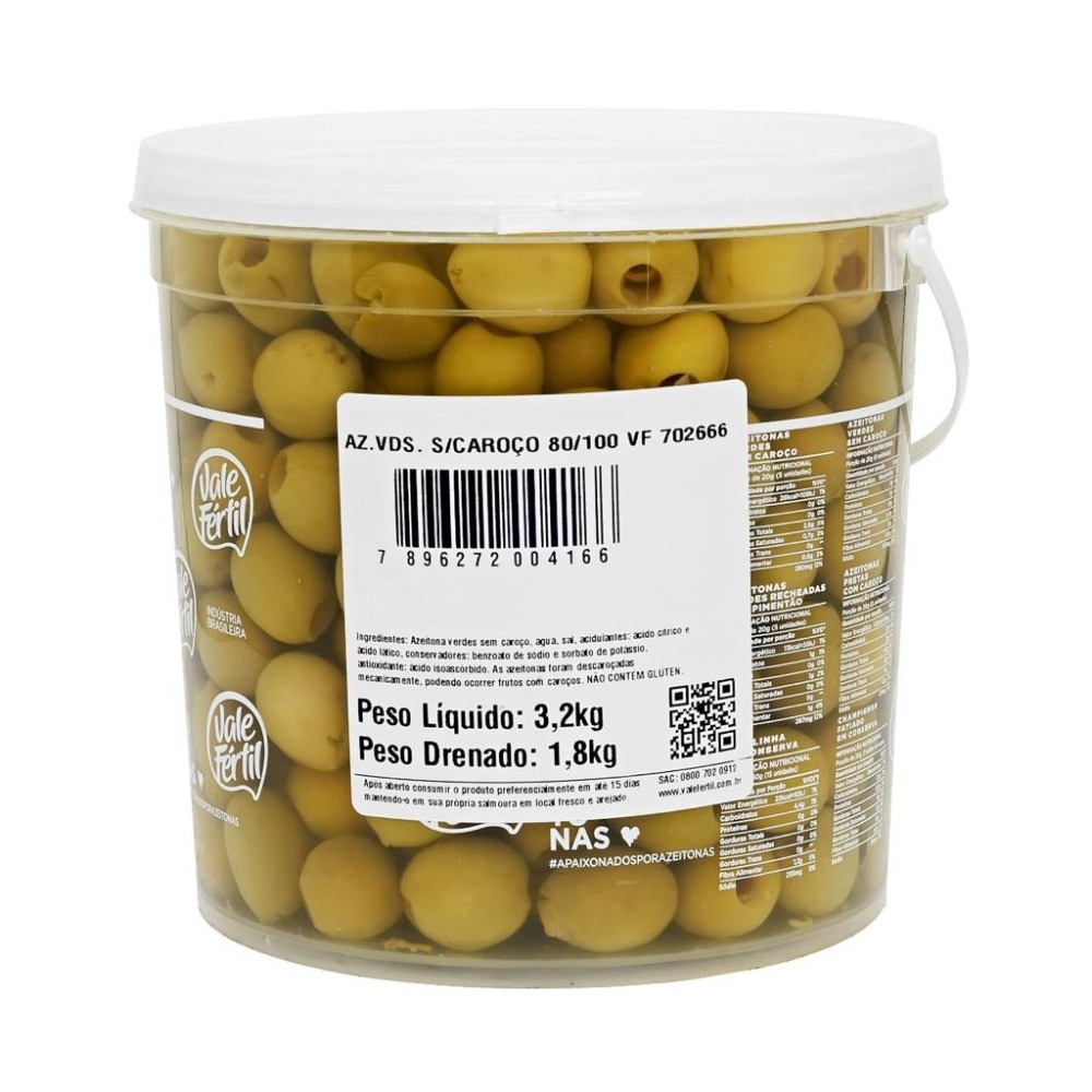 Balde Azeitona Verde Gordal sem Caroço Vale Fértil 3,2Kg
