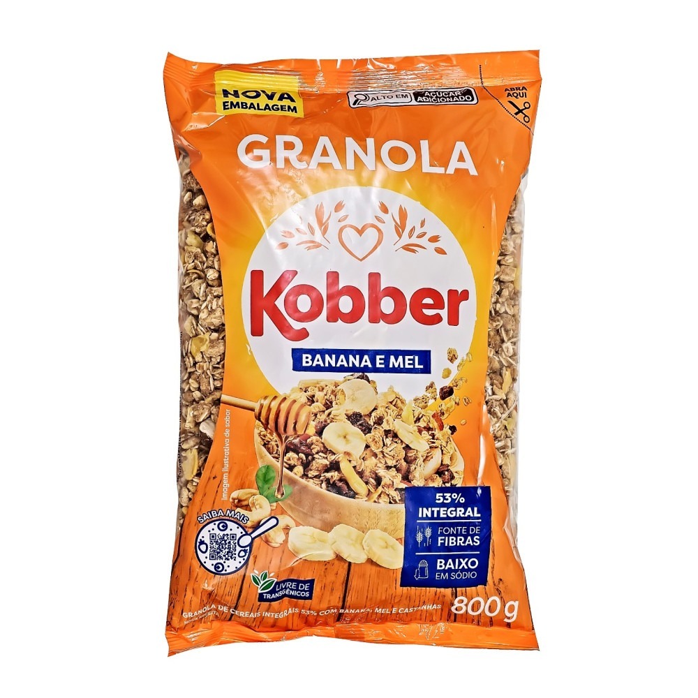 Descrição: Aveia em Flocos, Mel, Banana (Polpa e Passa), Fibra e Gérmen de Trigo, Açúcar Mascavo, Floko.Mix (Trigo, Arroz, Aveia, Milho e Cevada), Castanhas (Caju e Pará), Flocos de Milho, Óleo Vegetal, Maçã Desidratada, Gergelim e Malte de Cereais. Pode conter traços de soja.