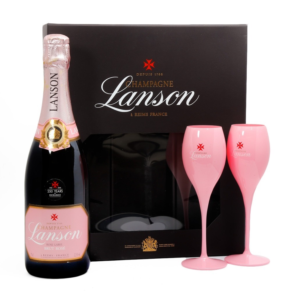 Kit Champagne Lanson Rose Label com 2 Taças (un)